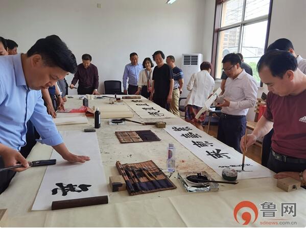 棗莊著名書畫家現(xiàn)場(chǎng)揮毫潑墨,向棗莊市企業(yè)發(fā)展研究會(huì)喬遷贈(zèng)送祝賀書畫作品。