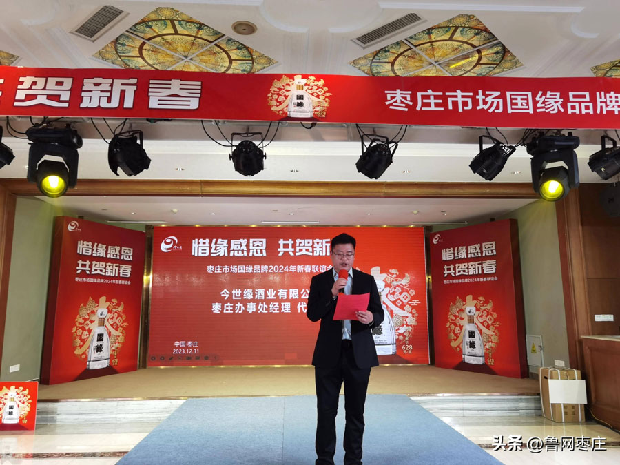 聯(lián)誼會上,首先由今世緣酒業(yè)銷售有限公司山東大區(qū)棗莊辦事處經(jīng)理代左生致辭并表示,很榮幸邀請到大家參與棗莊市場2024年新春聯(lián)誼會的活動中來。值此機會,我謹代表今世緣酒業(yè)向長期以來關(guān)心支持今世緣發(fā)展的合作伙伴們表示衷心的感謝和崇高的敬意!國緣品牌創(chuàng)牌20載以來,以“成大事,必有緣”的品牌主張,與大事結(jié)緣,同成功相伴,為英雄干杯。現(xiàn)已在江蘇省內(nèi)市場實現(xiàn)全覆蓋、高占有,熱銷態(tài)勢持續(xù)不減。在山東、上海、浙江、安徽等周邊省份及全國更廣泛區(qū)域?qū)崿F(xiàn)快速布局,成為今世緣全國化的明星產(chǎn)品。棗莊濱利酒水有限公司與今世緣酒業(yè)結(jié)緣以來,為棗莊市場今世緣·國緣產(chǎn)品的推廣、發(fā)展和品牌氛圍營造做出了突出的貢獻,在此感謝棗莊濱利酒水有限公司的張總和劉總及其團隊的辛勤付出。