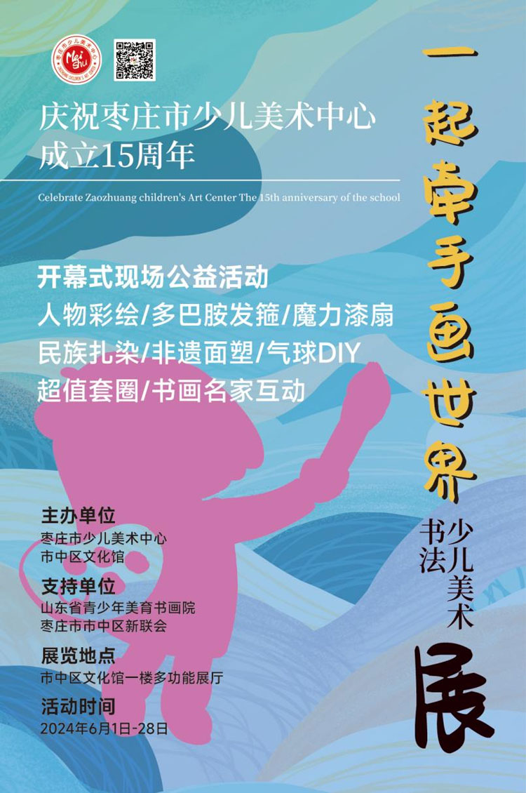 備受矚目的棗莊市少兒美術(shù)中心 15 周年校慶系列活動——“一起牽手畫世界”慶六一少兒美術(shù)書法展,將于 2024 年 6 月 1 日上午,在市中區(qū)文化館(市中區(qū)東湖公園)盛大開幕。