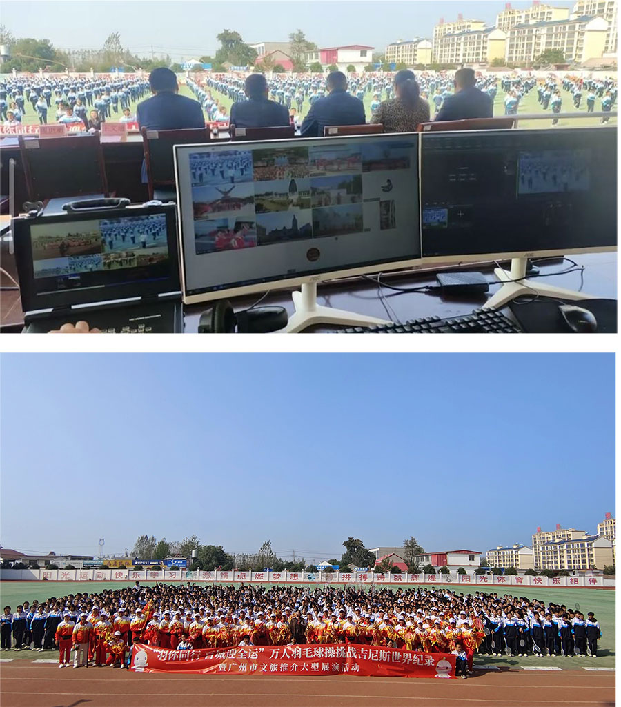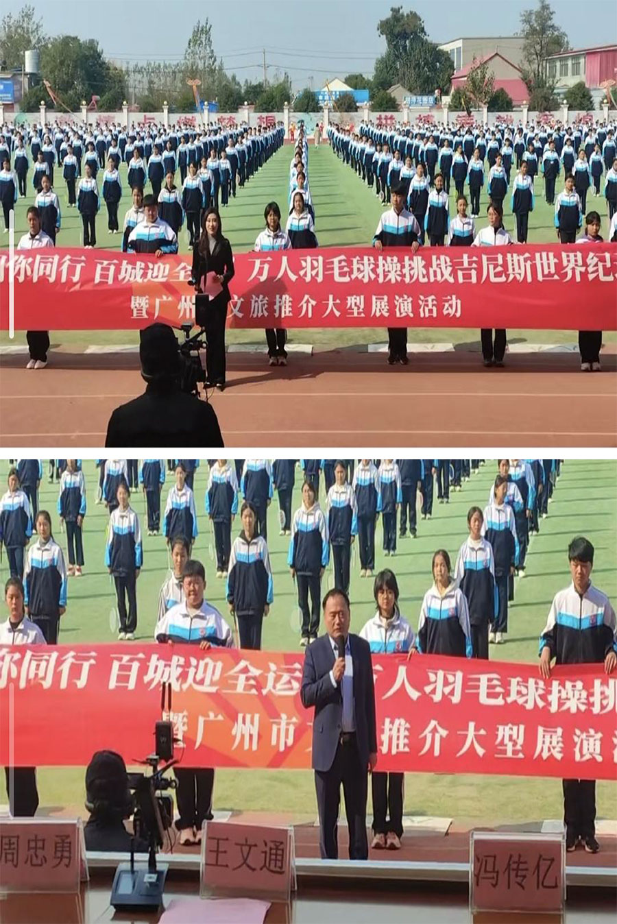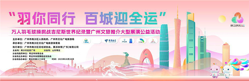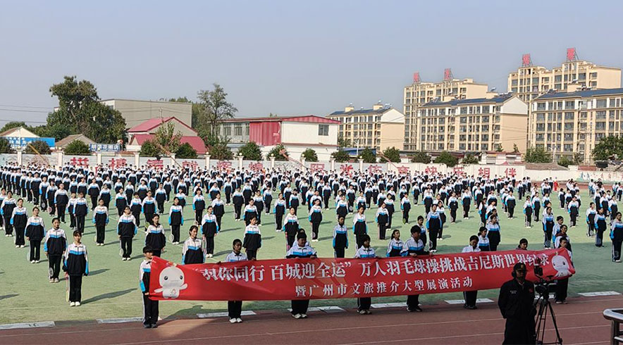 挑戰(zhàn)環(huán)節(jié)中,學校師生統(tǒng)一著裝、統(tǒng)一演繹《一起向未來》羽毛球健身操舞,動作整齊劃一。本次活動創(chuàng)新采用“南沙主會場+云端分會場”聯(lián)動模式。同時云端連線北京、上海、香港、棗莊等13個分會場,線上線下同步挑戰(zhàn)羽毛球健身操舞,全國15個云端分會場實時連線,線上線下共吸引6萬余人參與展演,現(xiàn)場參與人數(shù)超過3萬。經(jīng)吉尼斯官方認證官現(xiàn)場確認,活動成功創(chuàng)造“最多人同時表演羽毛球健身操舞”吉尼斯世界紀錄;顒硬粌H展現(xiàn)了全民健身運動的豐碩成果,也為2025年第十五屆全運會奏響了精彩前奏。全民健身的熱潮與文化自信交織,繪就了一幅動感與韻味兼具的城市畫卷。