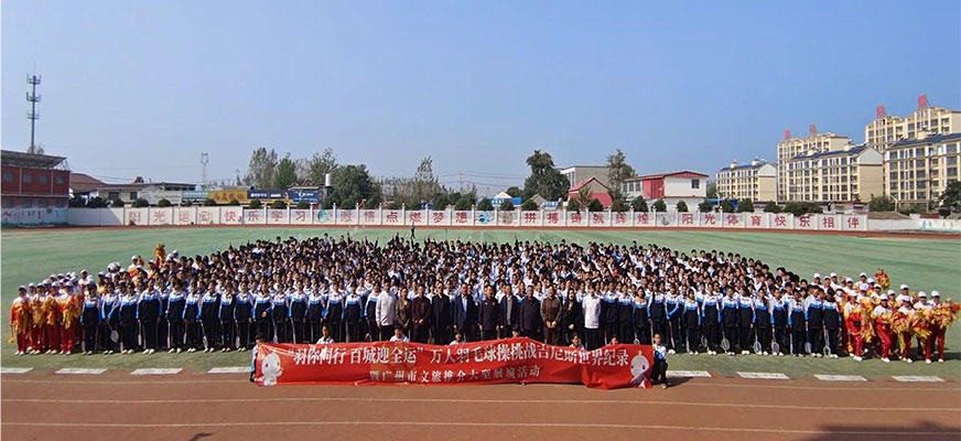 聲中活動正式開始,首先由棗莊市第十三中學馮校長致歡迎詞,其次由棗莊市體育舞蹈運動協(xié)會會長、本次活動主要負責人周忠勇同志代表山東分會場組委會向與會人員介紹了整個活動的籌備工作和對全國十五運所產(chǎn)生全民健身活動的意義。最后由棗莊市競技體育發(fā)展中心副主任時效峰同志宣布“百城迎全運”萬人羽毛球健身操挑戰(zhàn)世界吉尼斯紀錄山東棗莊分會場活動開始!