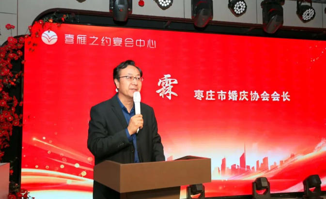山東省婚慶協(xié)會(huì)副會(huì)長(zhǎng)、棗莊市婚慶協(xié)會(huì)會(huì)長(zhǎng)張霖發(fā)表致辭,對(duì)“喜雁之約”的周年慶典表示熱烈祝賀,同時(shí)寄語(yǔ)中心未來(lái)能持續(xù)深耕創(chuàng)新,不斷打磨產(chǎn)品與服務(wù),為消費(fèi)者帶來(lái)更具質(zhì)感的宴會(huì)體驗(yàn),助力棗莊婚慶宴會(huì)行業(yè)邁向更高質(zhì)量的發(fā)展階段。