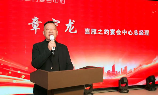 發(fā)布會(huì)伊始,喜雁之約宴會(huì)中心總經(jīng)理章守龍發(fā)表致辭。他首先代表中心全體同仁,向百忙之中蒞臨現(xiàn)場(chǎng)的各位領(lǐng)導(dǎo)、媒體朋友致以最誠(chéng)摯的敬意與最熱烈的歡迎,向過(guò)去一年里始終信賴、選擇中心的每一位客戶,以及風(fēng)雨同舟、并肩奮斗的合作伙伴們,致以最衷心的感謝。致辭中提到,正是得益于各界的鼎力支持與深度認(rèn)可,“喜雁之約”從初出茅廬的宴會(huì)空間,穩(wěn)步成長(zhǎng)為承載無(wú)數(shù)家庭幸福時(shí)刻的“城市喜宴優(yōu)選地”。從2024年11月16日,回望一年耕耘之路,中心始終堅(jiān)守“打造有溫度的宴會(huì)體驗(yàn)”初心,從首場(chǎng)婚禮的忐忑籌備到每月數(shù)十場(chǎng)宴會(huì)的從容駕馭,從最初4個(gè)主題宴會(huì)廳、單一餐飲服務(wù),升級(jí)為整合專業(yè)車隊(duì)、資深主持人、優(yōu)質(zhì)攝影等資源的“一站式宴會(huì)解決方案”,每一步跨越都離不開(kāi)市場(chǎng)的嚴(yán)苛檢驗(yàn),更離不開(kāi)媒體朋友們的鏡頭聚焦與筆墨見(jiàn)證。