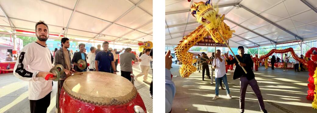 活動現(xiàn)場,彩旗飄揚,人聲鼎沸。20余名外國友人身著傳統(tǒng)服飾,在民俗傳承人的悉心指導下,手舞長龍,身隨龍動,他們的每一個動作都顯得格外認真,仿佛正在穿越時空,親身感受著中華傳統(tǒng)民俗文化的深厚底蘊和無窮魅力。