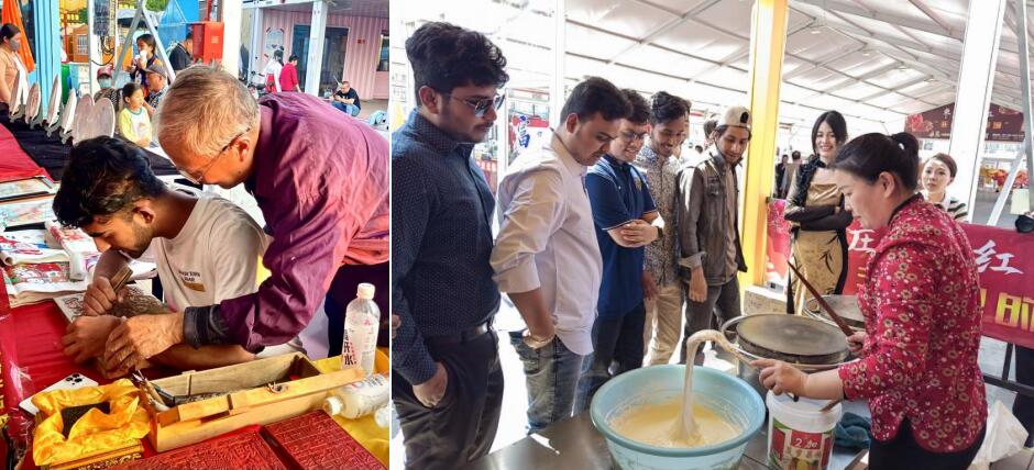 巴基斯坦留學生扎希德興奮地說:“我叫扎希德,來自美麗的巴基斯坦。今天下午,我有幸體驗了舞龍舞獅和版畫制作,感受到了中國傳統(tǒng)非物質文化遺產的神奇和迷人。我非常喜歡中國,喜歡這里的文化和美食!