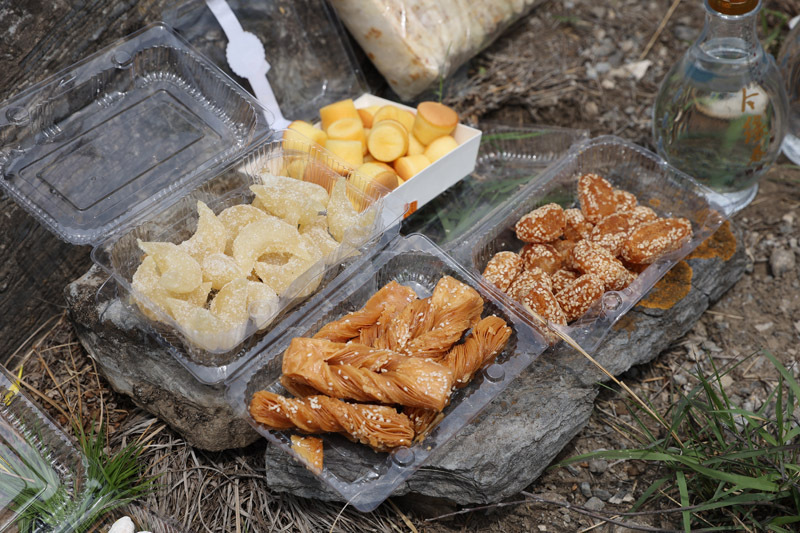 “我的爸爸啊,我找了你80多年,今天可算找到你了!我?guī)е鴥、孫都來(lái)看你了,希望你的英靈能保佑惦記你的人、保佑幫助過(guò)我們的人…… ”楊茂松眼含熱淚,邊喃喃地說(shuō)著邊將白酒灑在祭臺(tái)前。這一刻他仿佛是依偎在父親身邊的孩童,久久不愿起身。旁邊的人上前攙起老人,為他拭去滿臉的淚水。隨后,楊思忠的長(zhǎng)孫楊傳啟、曾孫楊勇跪泣在祭臺(tái)前,向先輩磕頭、祭酒。最后,所有登頂人員向祭臺(tái)三鞠躬,并在山上合影留念。