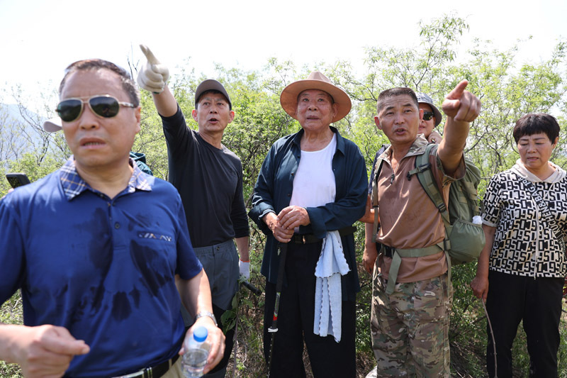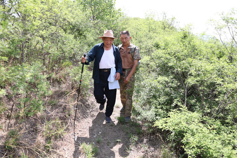 祭奠活動(dòng)當(dāng)天,一行人驅(qū)車從昌平城區(qū)向北出發(fā),行駛到居庸關(guān)附近的大灰?guī)X子后,接下來(lái)的山道狹窄崎嶇、坑洼不平,沒(méi)有鋪裝路面,只能徒步攀登。對(duì)于87歲的楊茂松來(lái)說(shuō),攀爬陡峭的野山并非易事。“出于安全考慮,我們?cè)鴦駰罾喜槐厣仙,可以在車(yán)锏群虼蠹,但他?jiān)持要去父親戰(zhàn)斗過(guò)的地方看一看。”楊國(guó)慶說(shuō)。