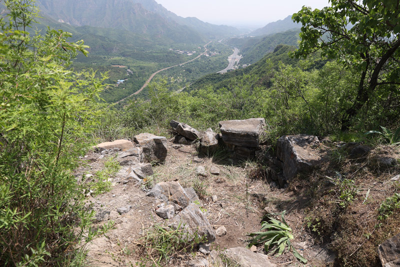 據(jù)楊國(guó)慶介紹,這處用毛石壘砌的環(huán)壕是南口戰(zhàn)役期間中國(guó)軍隊(duì)碼砌的重機(jī)槍掩體,可容納2到3名士兵。在掩體內(nèi),楊國(guó)慶還發(fā)現(xiàn)一塊古樸的青磚,疑為工兵構(gòu)筑掩體時(shí),挪用了居庸關(guān)長(zhǎng)城的城磚。北青報(bào)記者在現(xiàn)場(chǎng)看到,該掩體位置隱蔽、視野極佳,向南可眺望到南口和關(guān)溝以及京藏高速路上川流不息的車輛,向北可將居庸關(guān)盡收眼底。