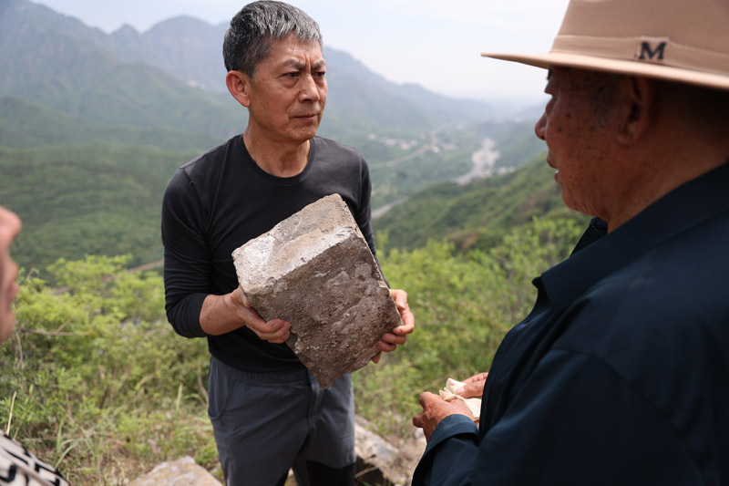 楊國(guó)慶(黑色上衣)向楊茂松介紹居庸關(guān)的地形