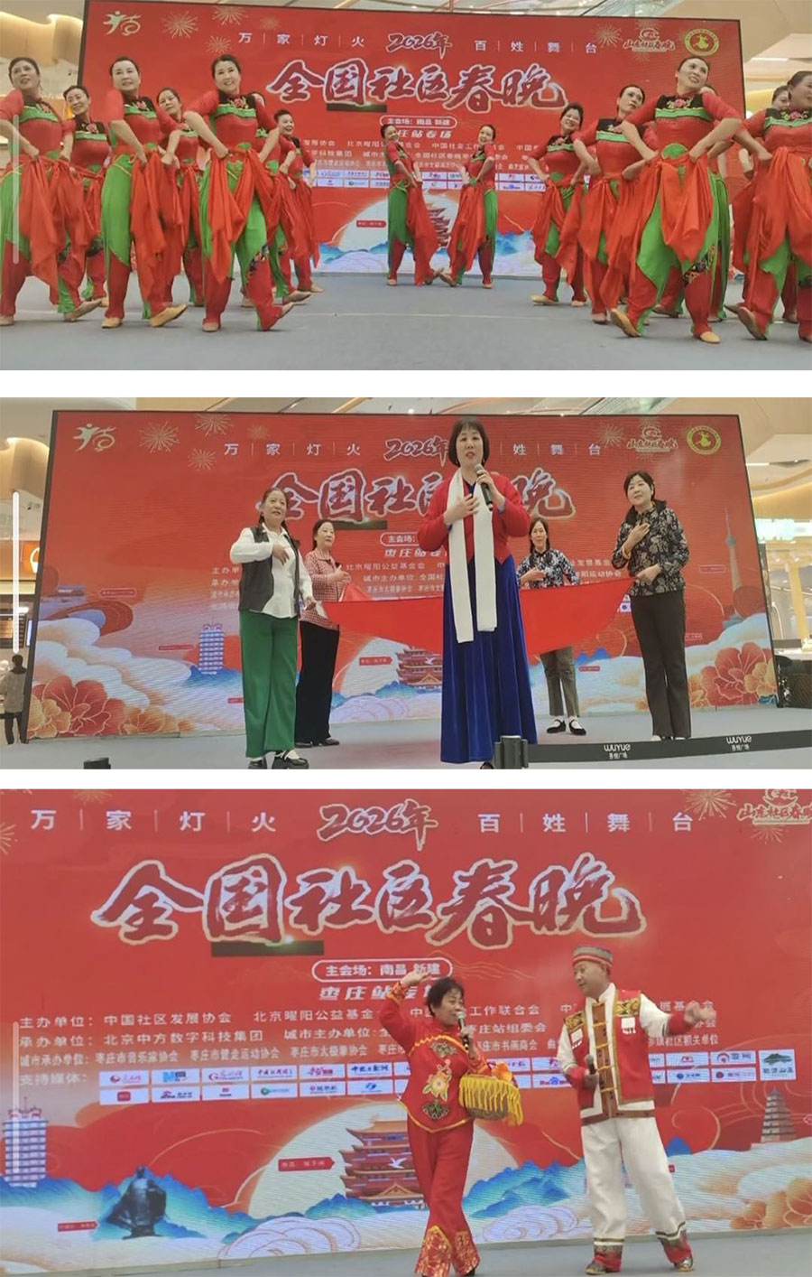 主持人詳細介紹了今年的活動主題“萬家燈火、幸福家園”!2026全國社區(qū)春晚”作為一項全國性的社區(qū)群眾文化品牌活動,由中國社區(qū)發(fā)展協(xié)會、北京曜陽公益基金會、中國社會工作聯(lián)合會、中國老齡事業(yè)發(fā)展基金會聯(lián)合主辦,由中方數(shù)字科技集團有限公司承辦,棗莊站由全國社區(qū)春晚棗莊站組委會、棗莊市體育舞蹈運動協(xié)會主辦、棗莊市音樂家協(xié)會、棗莊市健走運動協(xié)會、棗莊市太極拳協(xié)會、棗莊書畫商會、棗莊曲藝家協(xié)會及滕州市廣場舞協(xié)會等各街道、鄉(xiāng)鎮(zhèn)社區(qū)相關單位共同協(xié)辦。